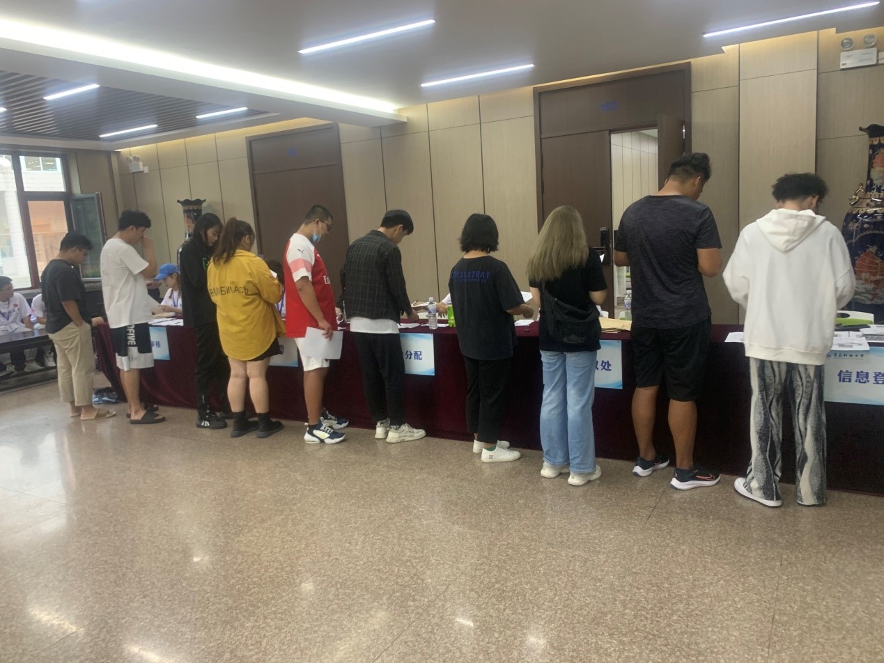 清晨7点开始,迎新工作组来到迎新点,在迎新现场以饱满的精神状态等待每一位前来的新生,耐心解答新生疑问,指引新生们前往报到处办理入学手续,带领新生前往宿舍楼入住。