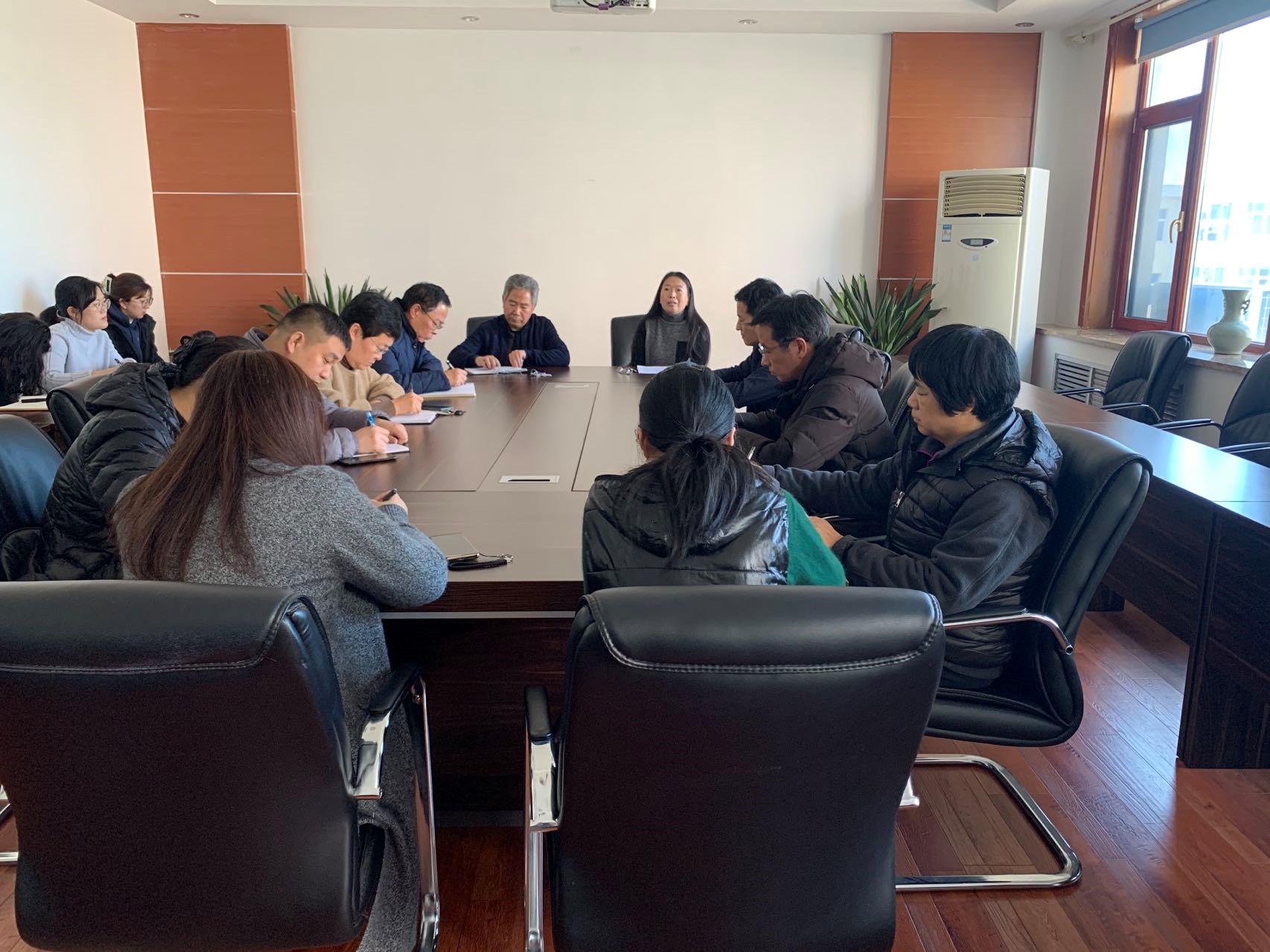 3月1日,公司在办公楼三楼会议室召开新学期教职工大会,公司全体教职工参加会议。