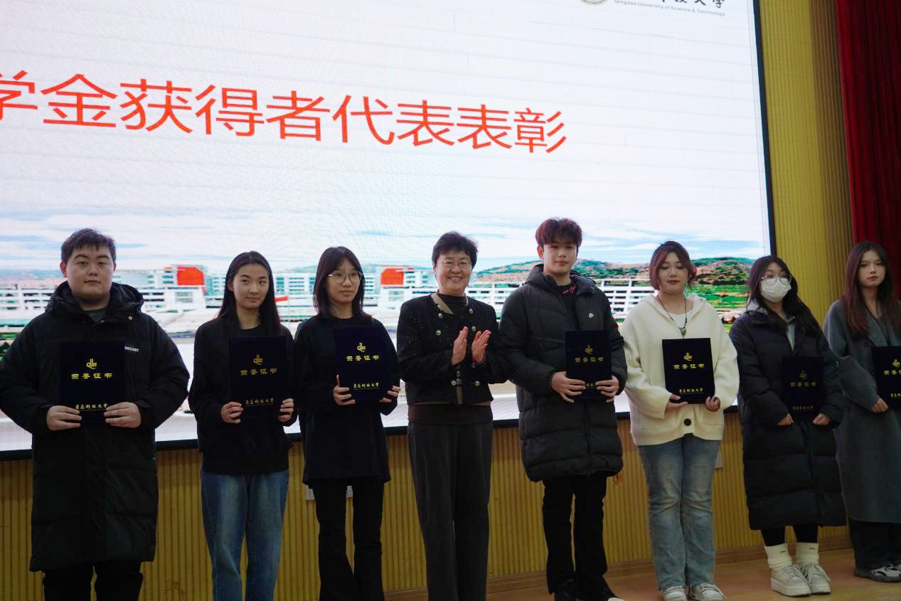 朱梅芝宣读奖学金、自考优秀员工、优秀员工干部表彰文件、员工干部聘任文件。梁树清、郭曰铎、朱梅芝分别为优秀员工干部、自考优秀员工、奖学金获得者颁奖。