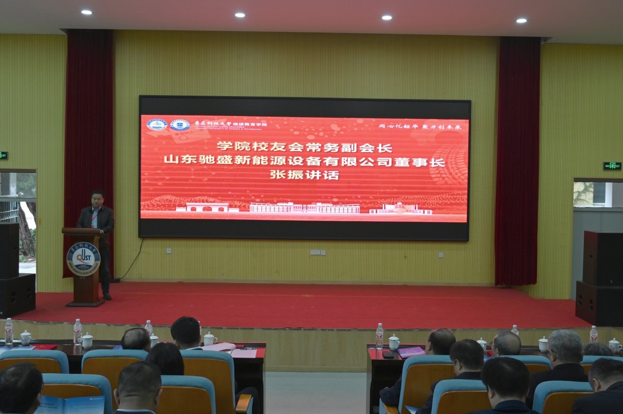 公司首届员工会(终身学习联盟)常务副会长、山东驰盛新能源设备有限公司董事长张振代表首届理事会成员发言时表示,要以公司员工会(终身学习联盟)为新的纽带,更积极、更深入地参与到母校和公司的发展建设中。