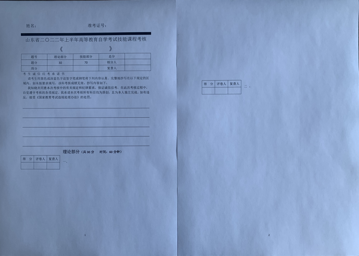 用A4纸张打印答题纸(格式不能改变)后作答,建立一文件夹(文件夹以“理论部分”命名),将作答后各页拍照成电子版保存,注意:如果答案有多页,要拍在一张照片里,如下图所示: